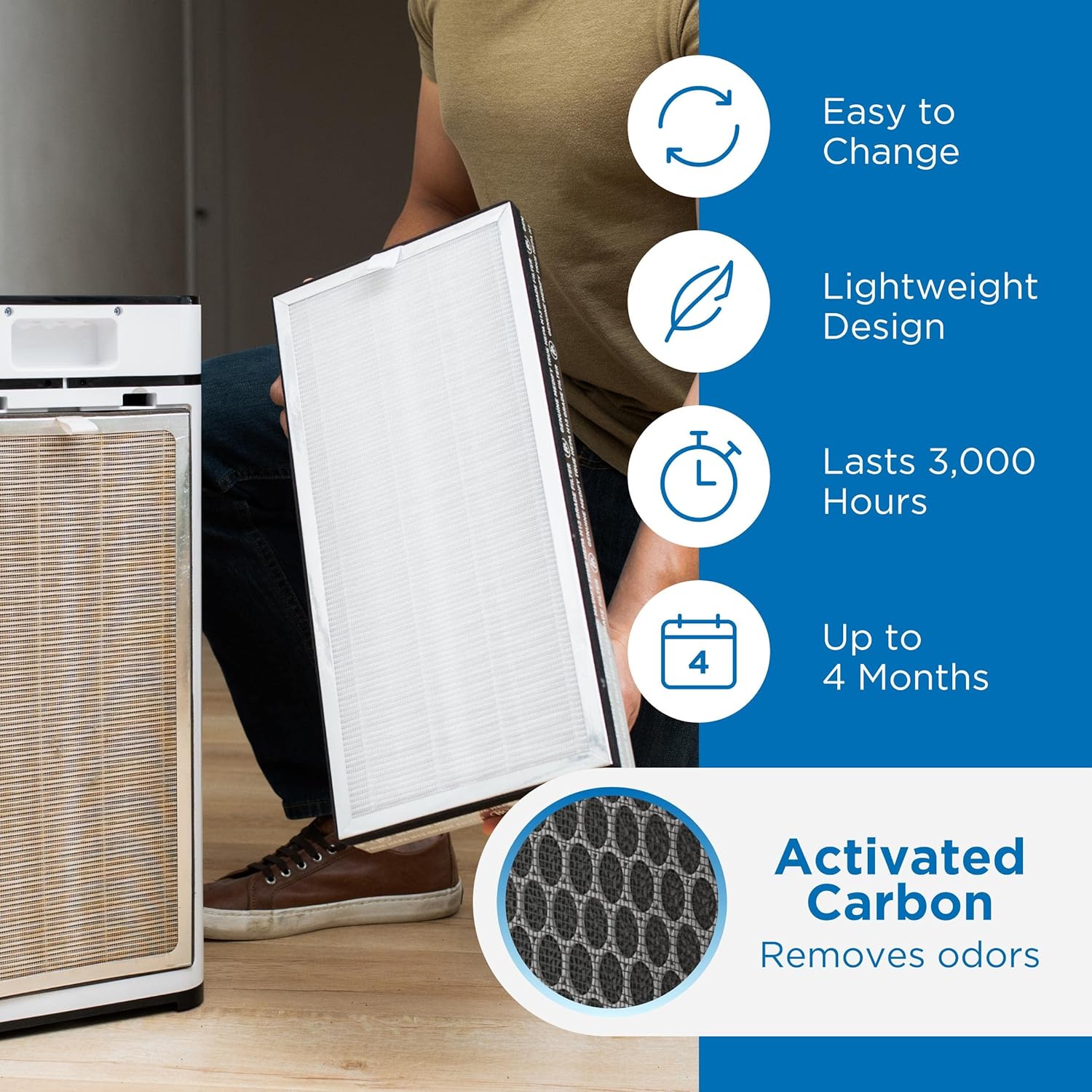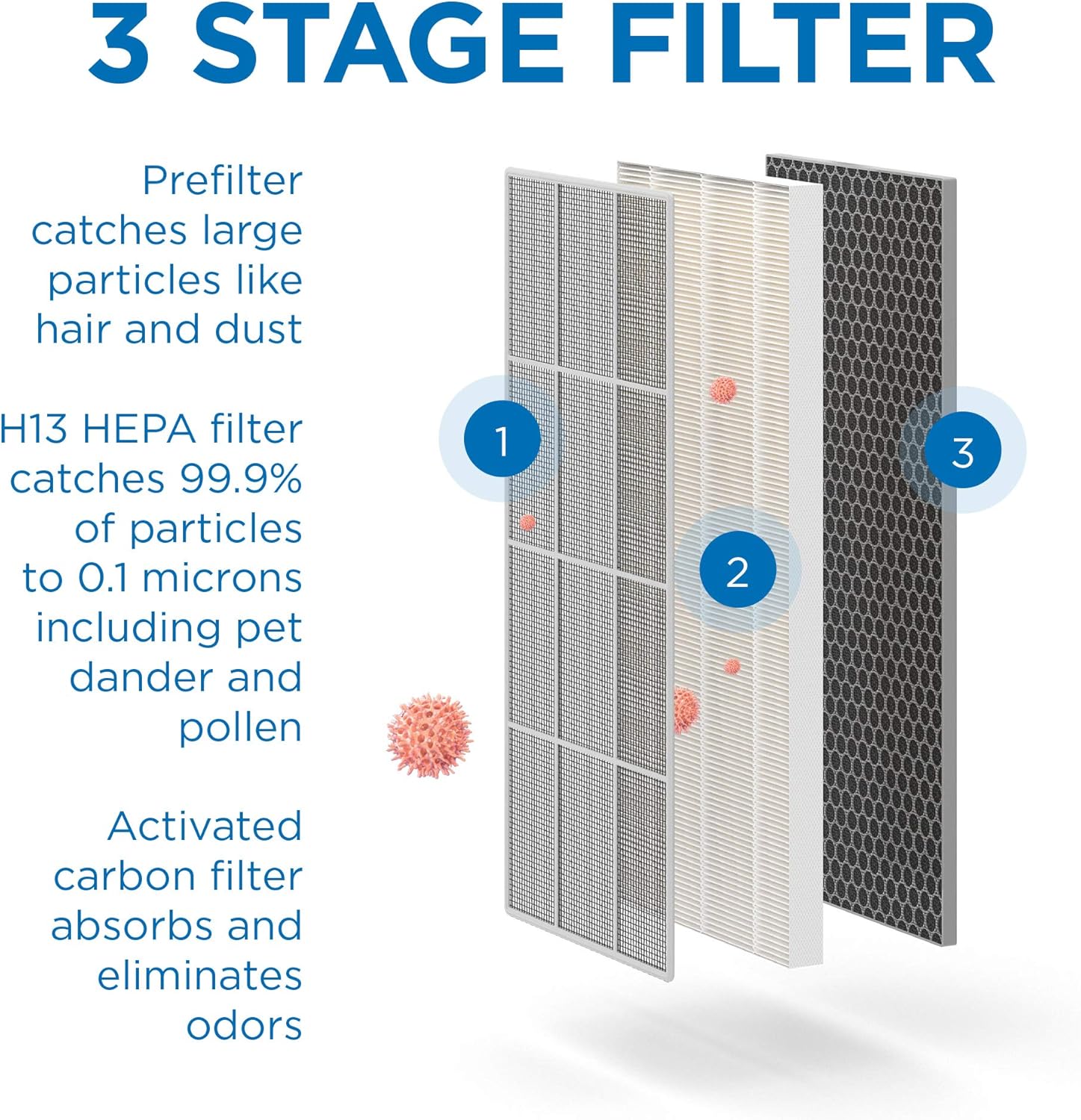Featuring a 3-in-1 filtration system, this genuine replacement filter combines a pre-filter, H13 HEPA filter, and activated carbon filter to effectively capture and neutralize airborne contaminants. The pre-filter traps larger particles, while the H13 HEPA filter captures particles as small as 0.1 microns with incredible precision. The activated carbon filter targets and eliminates odors, ensuring that your indoor air is not only clean but also fresh and odor-free.