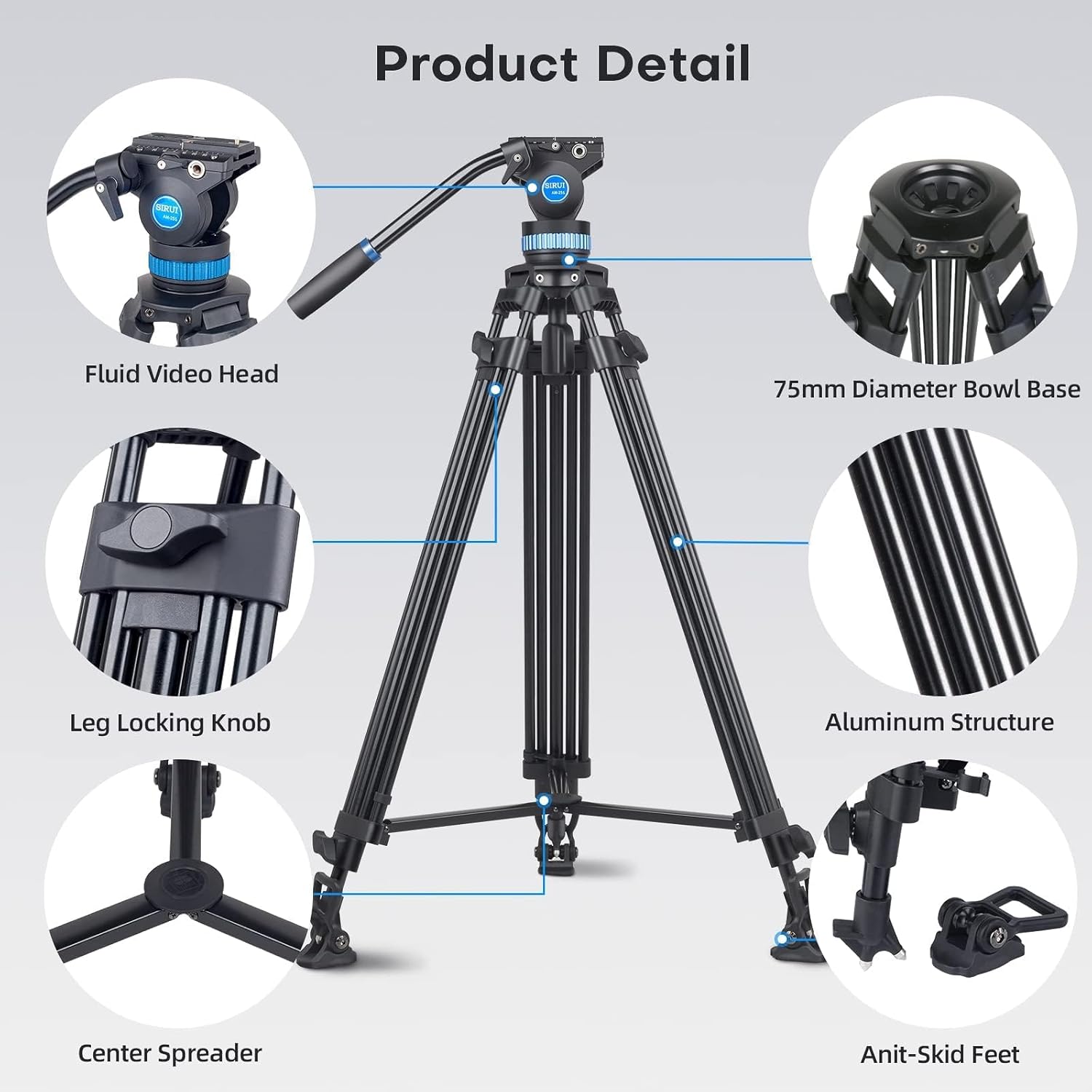 Introducing the SIRUI AM-25S Video Tripod, the ultimate companion for professional videographers and photographers seeking unparalleled stability and precision in their work. This 74.8″ heavy-duty tripod is designed to support camcorders, cameras, and DSLRs with ease, making it the ideal choice for capturing stunning visuals in any setting.