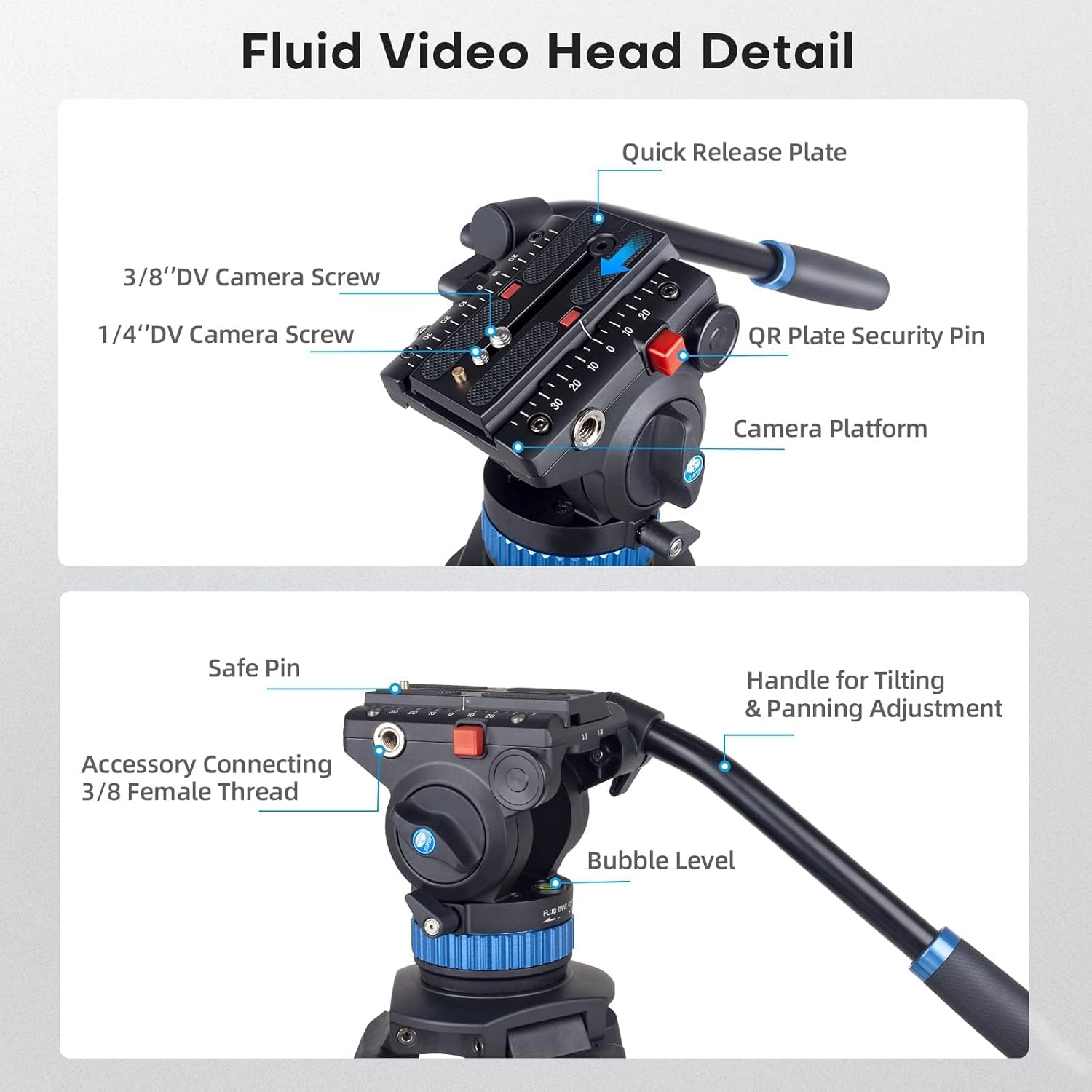 The quick-release plate ensures fast and effortless camera mounting, allowing you to switch between setups quickly and efficiently. With a maximum load capacity of 22.0lb, this tripod can support heavy camera setups without compromising stability.