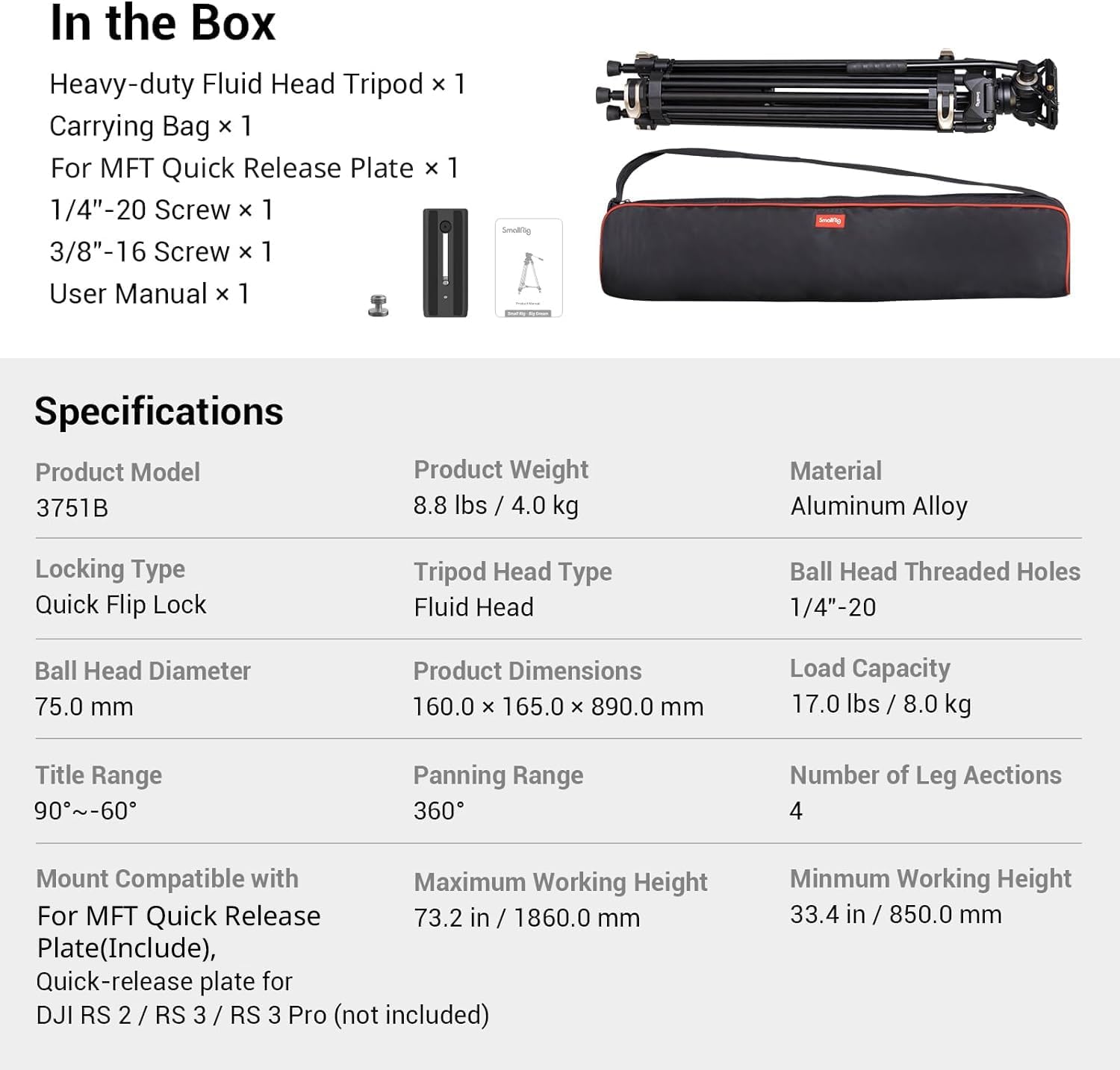 Crafted with high-quality materials, this tripod is built to withstand the demands of heavy use, providing stability and support for your equipment. Whether you’re shooting in the studio or out in the field, the SmallRig AD-01 delivers reliable performance in any environment.